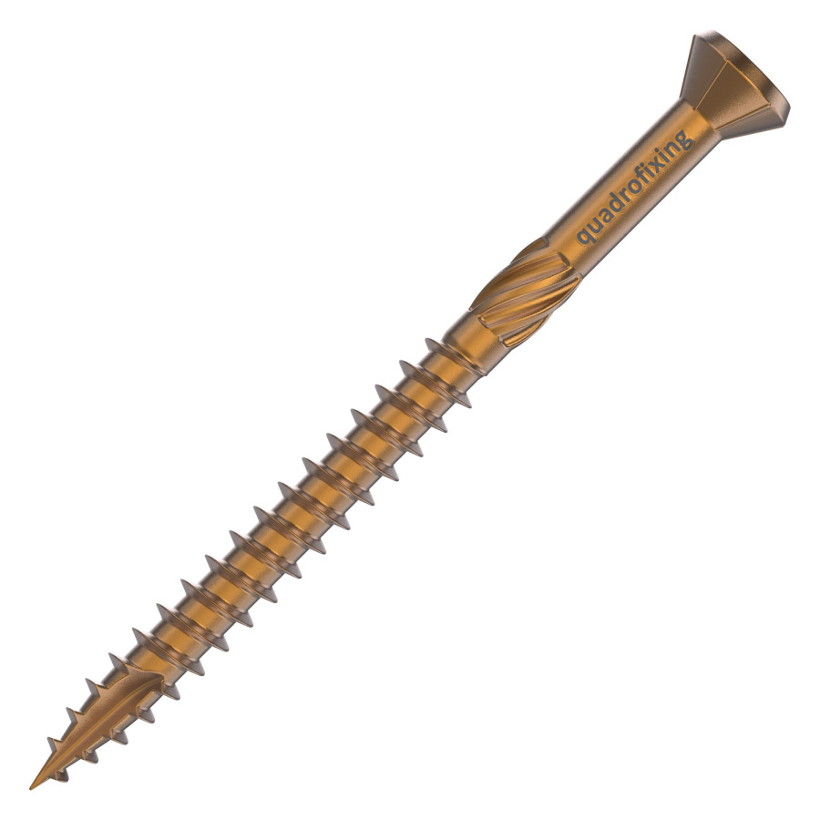 Wkręty mają końcówkę samowiercącą, gwint frezujący i żebra frezujące pod łbem, które umożliwiają czyste zagłębienie w drewnie. Woskowa powłoka poślizgowa zmniejsza tarcie i moment dokręcania podczas montażu. Napęd TX25 zapewnia stabilne prowadzenie bitów. Wkręty nadają się zarówno do miękkiego, jak i twardego drewna, w tym egzotycznego.