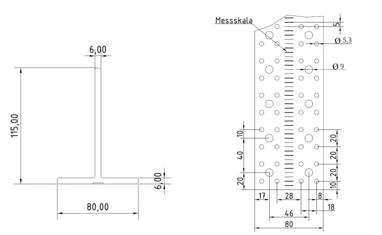Dostarczany w łącznej długości 2 m - dzięki czemu profil T można przyciąć do wymaganej długości na miejscu. Znaczne oszczędności i optymalizacja niewidocznych połączeń drewna. Nadaje się do KVH, BSH (drewno klejone warstwowo), CLT, ale także do konstrukcyjnego drewna budowlanego.